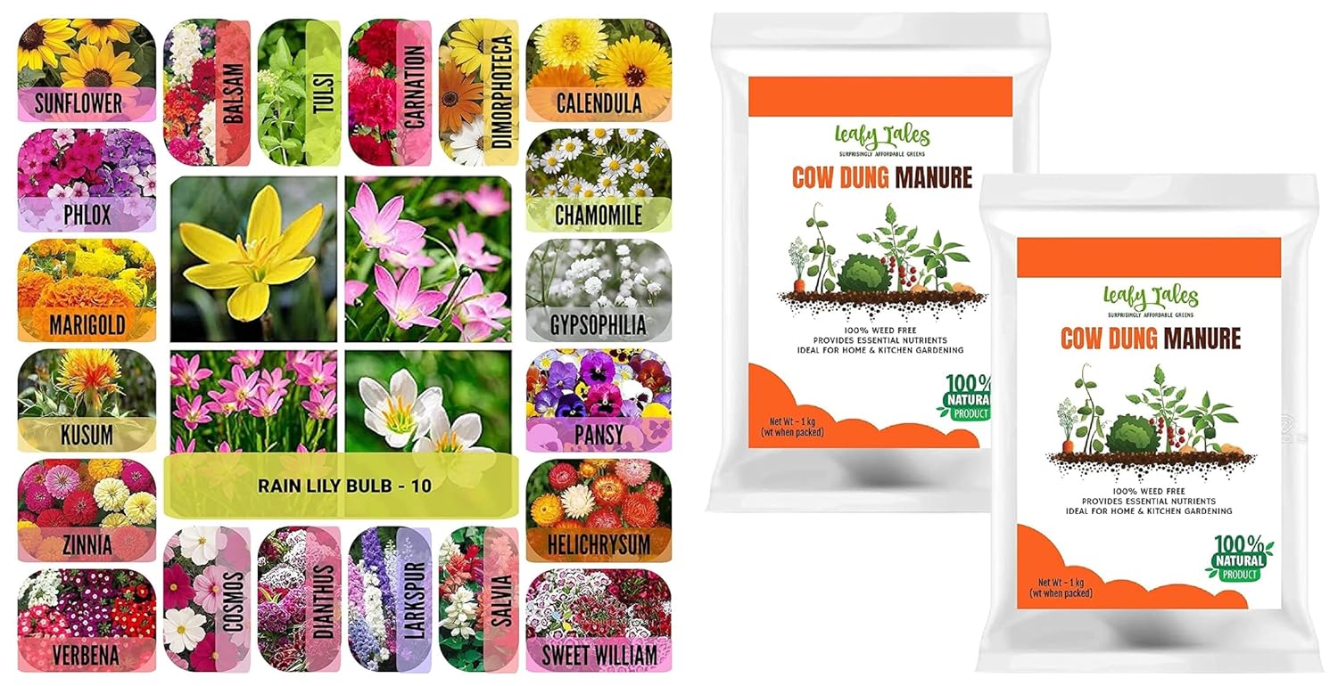 Experimenta la alegría de plantar semillas fáciles de cultivar, perfectas para cualquier estación. El surtido ofrece una excepcional diversidad, permitiéndote cultivar una variedad de flores que añadirán color durante todo el año. Desde los vibrantes Cosmos veraniegos hasta los encantadores Pensamientos invernales, estas flores crecerán en plena luz solar o en sombra parcial, transformando cualquier rincón de tu jardín en una obra maestra escénica. Los bulbos de Lirio de lluvia se pueden plantar en cualquier época del año; esta increíble flor florecerá de manera consistente, adornando tu jardín con flores en cada temporada. Diseñados para facilitar el cultivo, estas semillas y bulbos son ideales tanto para principiantes como para expertos,